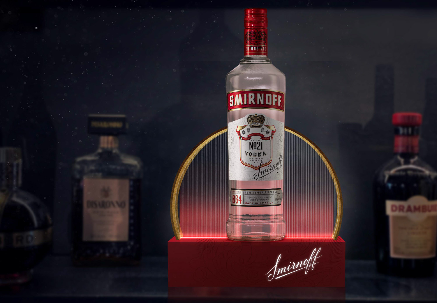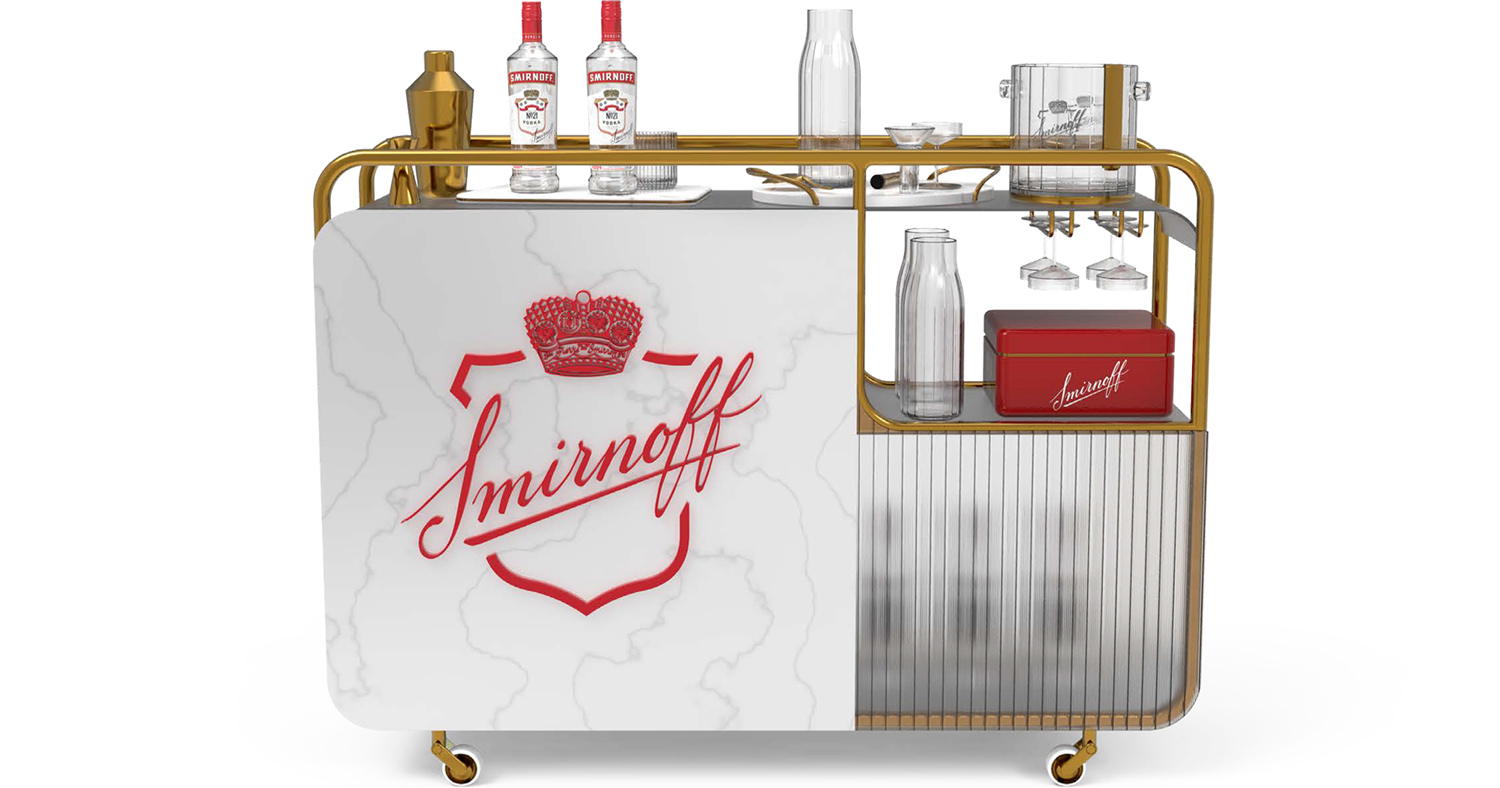 Our on trade assets had to provide a visual disruption to stand out at the back of bar and win 1st drink. We designed a range of visibility assets to keep Smirnoff top of mind and drive purchase in-bar.